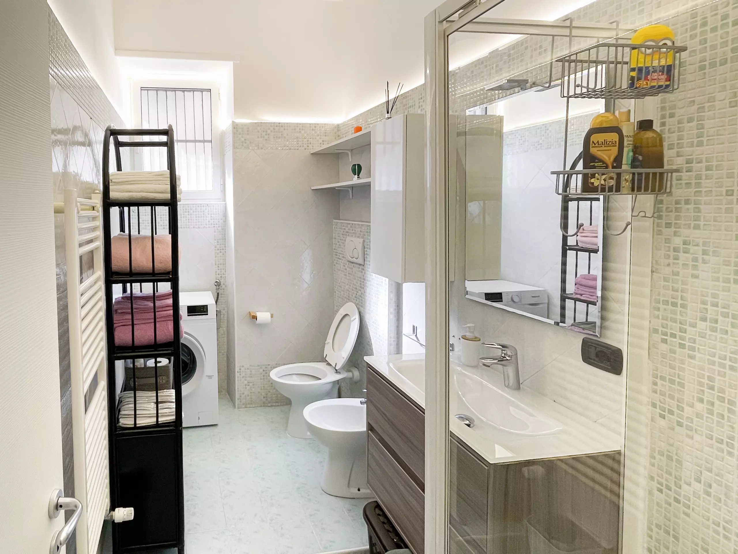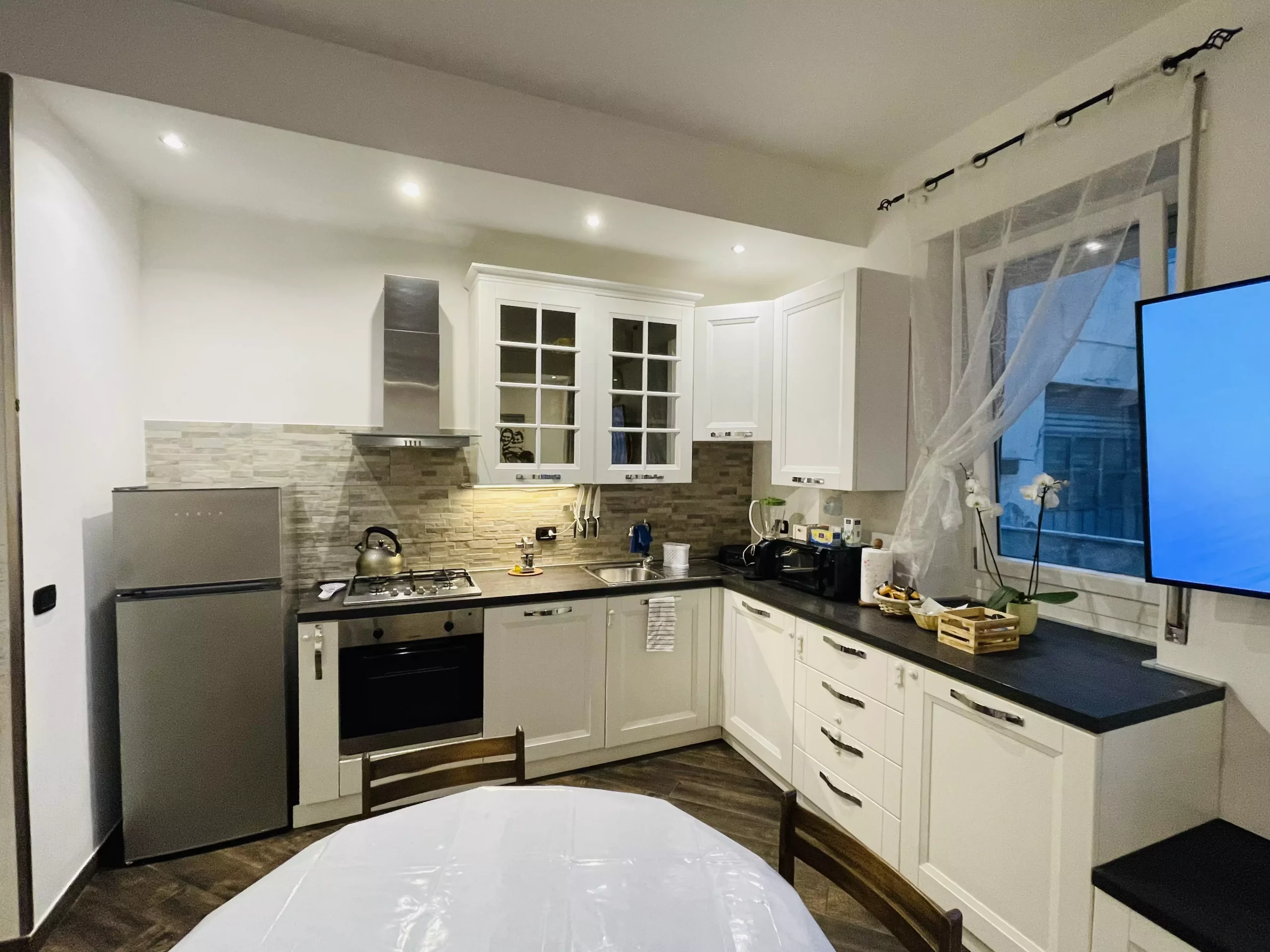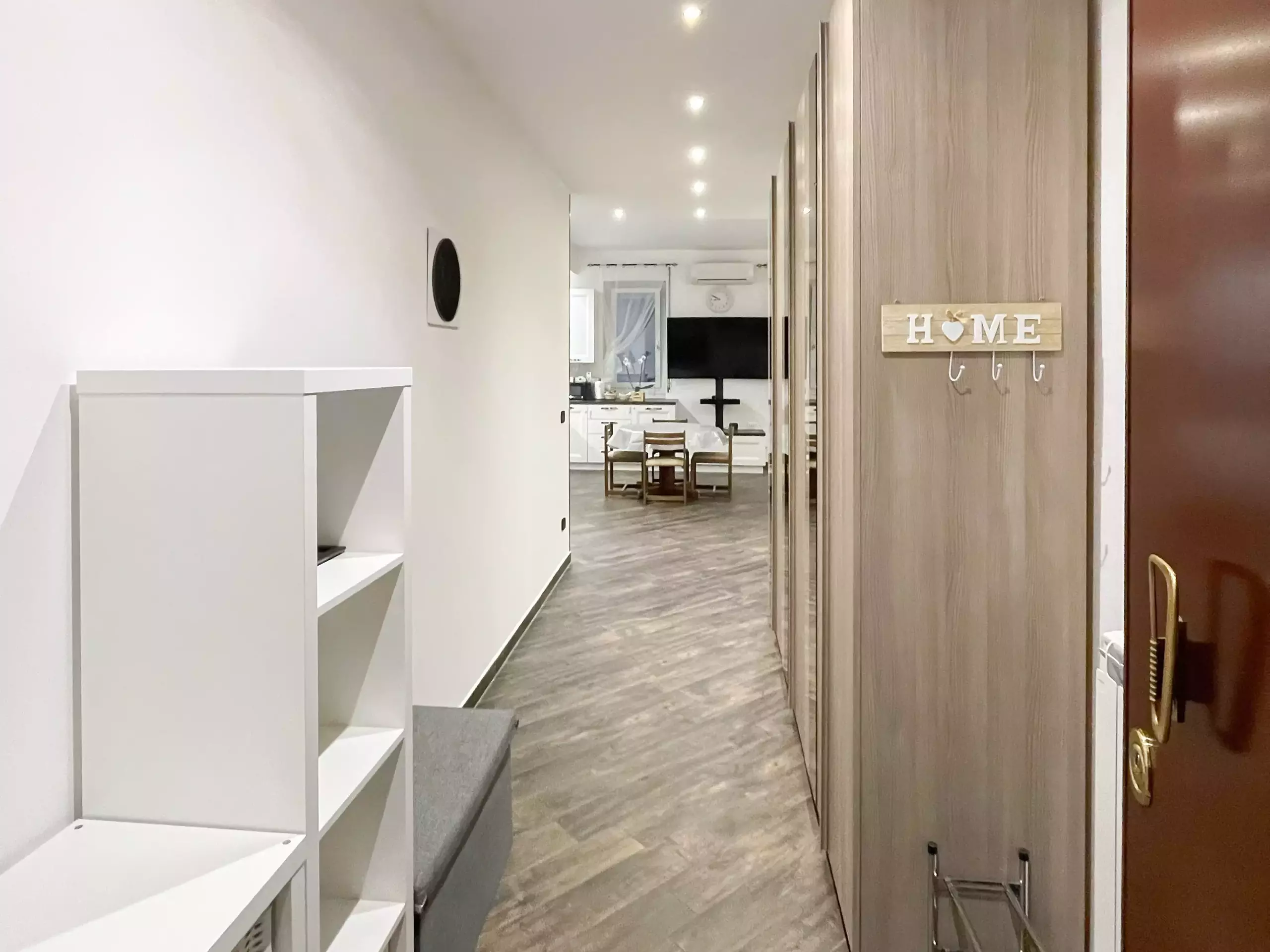 L’appartamento è composto da un ampio ingresso, salone doppio con cucina a vista e divano letto, disimpegno, bagno con doccia e lavatrice, e camera con letto matrimoniale. È possibile aggiungere un letto singolo per un quinto ospite. Dispone di due condizionatori, riscaldamento autonomo, TV a schermo piatto con canali satellitari e WiFi gratuito. La cucina è completamente attrezzata con frigorifero, lavastoviglie, microonde, macchina da caffè, frullatore e crepiera elettrica.